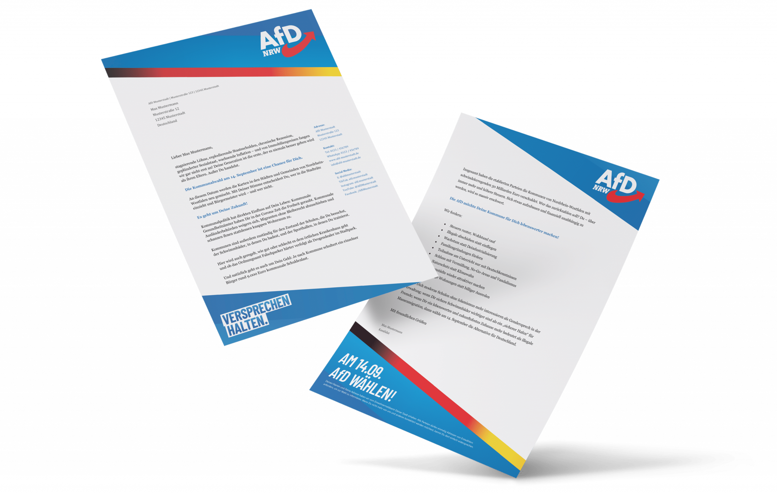 Damit die AfD auch in allen Wahlkreisen auf dem Stimmzettel steht, brauchen wir Sie als Direktkandidat. Zeitgleich können Sie auch über die Wahlliste kandidieren, die ebenfalls zu besetzen ist. Hier gilt: Je länger die Wahlliste, desto mehr gewonnene Mandate kann die AfD auch tatsächlich besetzen!